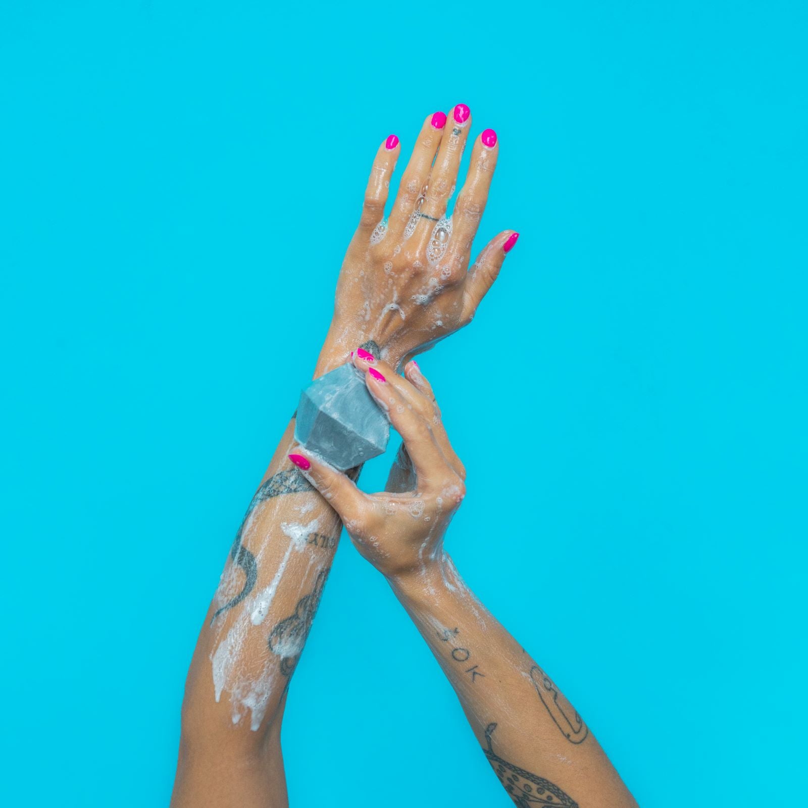 Lather the bar in your hands or on a sponge, then wash your skin and rinse thoroughly with water.
