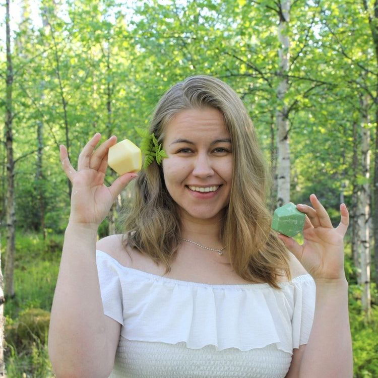 SOLIDU bars are made solely from concentrated active ingredients, plant extracts, and natural essential oil blends. One bar lasts as long as a 300ml bottle of liquid product. You’re not paying for water, but instead, receiving the full benefits of concentrated beauty.
