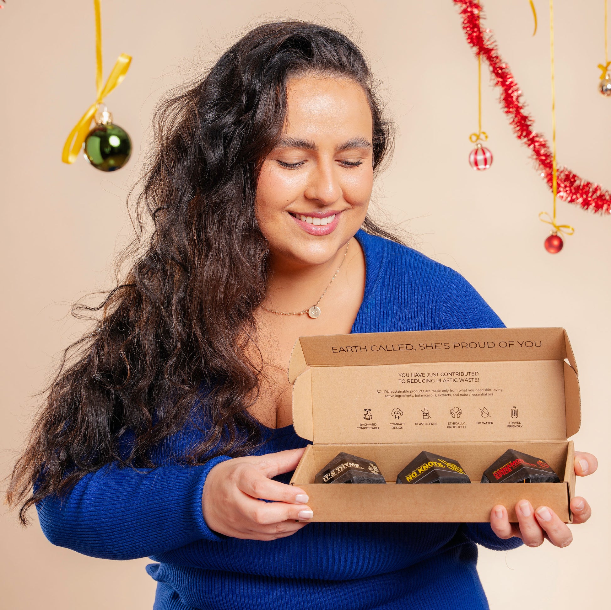 Planning a trip? No need to worry about the 100ml liquid rule—SOLIDU products are water- free and can be safely packed in your carry-on. For convenience, we also offer a reusable waterproof travel case to store your products on the go.