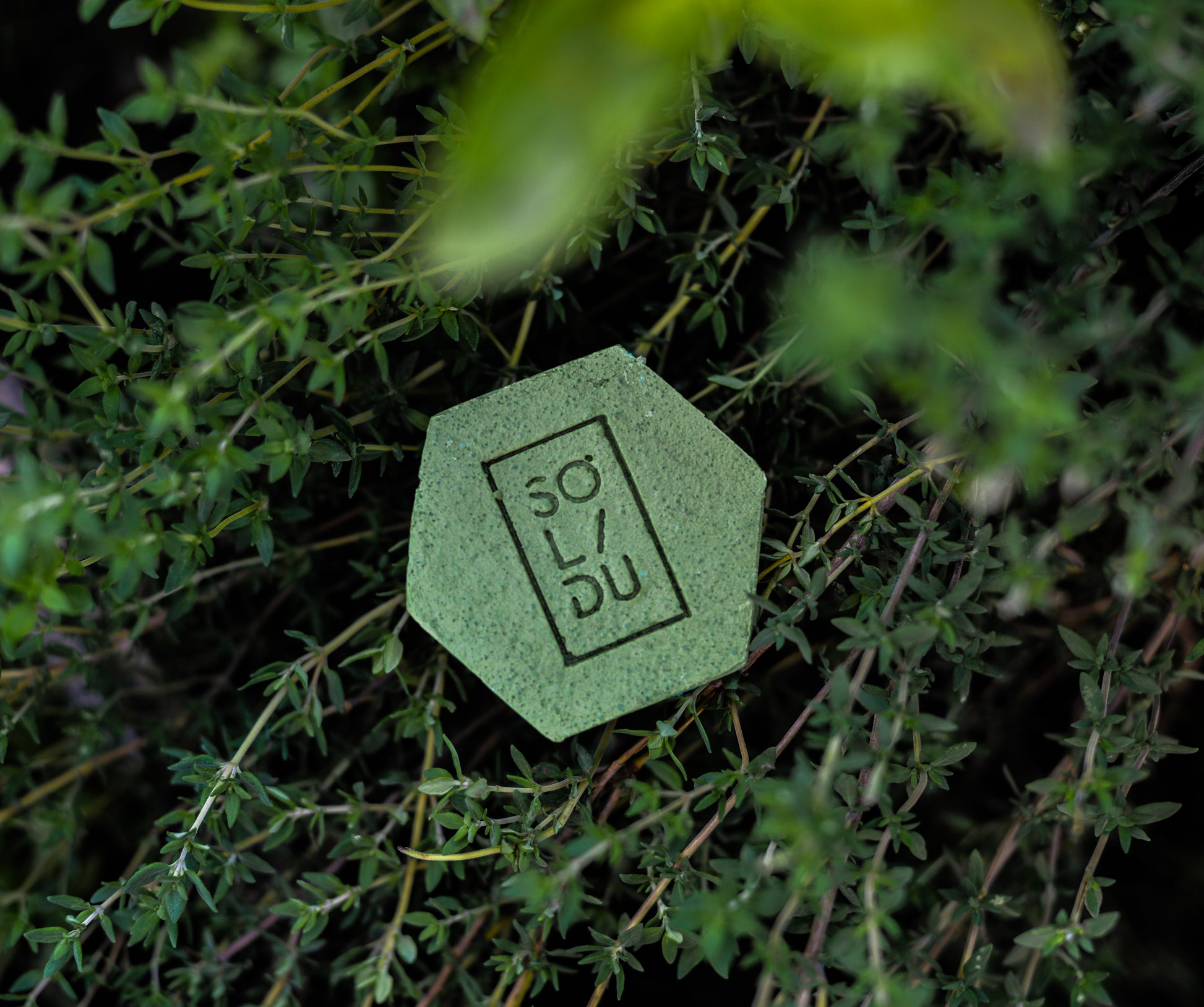 SOLIDU pakuotė neturi nei plastiko, nei popieriaus. Ji pagaminta iš krakmolo, bambuko ir anglies. Bambukas yra viena tvariausių medžiagų, auganti net po metrą per dieną. Dėžutės juoda spalva išgaunama iš natūralios anglies, be sintetinių dažų.